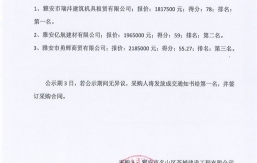本項目評審活動于2021年2月19日圓滿結束,現(xiàn)將評審情況公示如下:1、雅安市浩銘建設工程有限公司;報價:4614594.70元;得分:96.1;排名:第一名2、四川省名興建筑有限公司;報價:5309632.20元;得分:94.8;排名:第二名3、四川源信建筑工程有限公司;報價:5336891.50元;得分:94.2排名:第三名4、中標星辰建筑工程有限公司;報價:4888150.40元;得分:92.9排名:第四名公示期3日,若公示期間無異議,招標人將發(fā)放中標通知書給第一名,并簽訂合同。...