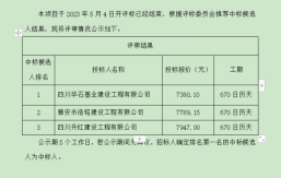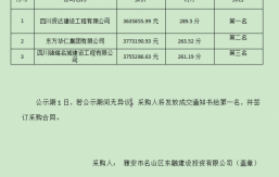 成雅工業(yè)園區(qū)百丈安置房二期項(xiàng)目鋼筋采購,根據(jù)有關(guān)法律、法規(guī)、規(guī)章的規(guī)定,于2023年4月21日經(jīng)雅安市名山區(qū)益業(yè)商貿(mào)有限公司競(jìng)爭(zhēng)性談判比選流程,評(píng)審工作已經(jīng)結(jié)束,成交人已經(jīng)確定,現(xiàn)將成交結(jié)果公示如下:成交單位名稱:四川霞成商貿(mào)有限公司成交價(jià):加成價(jià)30元/噸進(jìn)場(chǎng)時(shí)間:待甲方通知成交質(zhì)量要求:合格自成交結(jié)果公示之日起一個(gè)工作日內(nèi),對(duì)成交結(jié)果無異議的,采購人將簽發(fā)成交通知書,并在五個(gè)工作日內(nèi)簽訂合同。雅安市名山區(qū)益業(yè)商貿(mào)有限公司2023年4月23日...