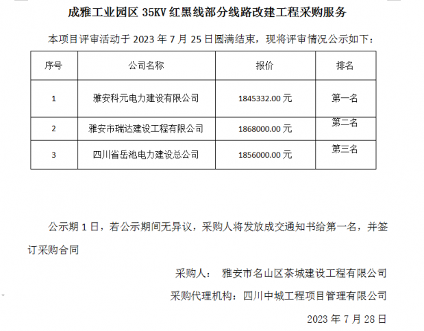 成雅工業(yè)園區(qū)35KV紅黑線部分線路改建工程采購服務
